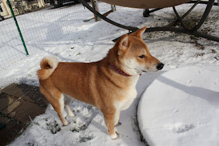 She likes the smell of it! "Snow is on your nose, Kuri!"