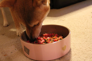 Tonight her dinner was fresh raw beef with carrot and kale.
