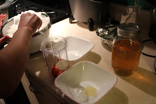 材料は、小麦粉、卵、ノンファットヨーグルト、人参、蜂蜜、パウダースキムミルク。