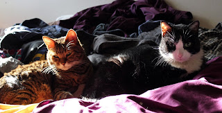 Our two wise men are enjoying a little puddle of sunshine next to the window.