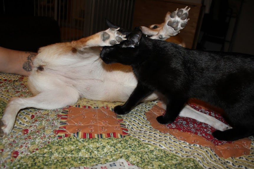 Kuri trying to play with her but, Zoe doesn't fight back.